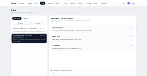 Obchodník alebo account manažér vytvorí klienta, zadanie a zákazku. K projektu sa následne priradia úlohy, termíny, zodpovedné osoby, rozpočet aj stav realizácie. Tím má okamžite prehľad o tom, čo je rozpracované, čo čaká na schválenie a čo je odovzdané klientovi.